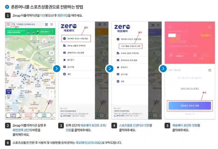 5) 제로페이 포인트 전환 클릭 : 클릭 후 스포츠상품권으로 전환합니다.