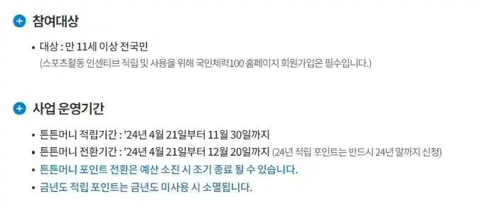 - 2024년 4월 21일부터 11월 30일까지 : 이 기간에 운동을 통해 포인트를 적립할 수 있습니다.